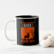 Die Tasse der Hirschjagd ist mit einem Silhouette Hirsch auf orangefarbenem Hintergrund mit orangefarbenem und weißem Text versehen, der auf "Mein Baum hat einen Hirschständer" steht!