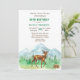 Geburtstagsparty Einladungen für Hirschjäger mit einem Hirsch durch einen Wald mit Bergen im Hintergrund. Machen Sie den Geburtstag Ihres Lieblings-Hirschjägers zu einer besonderen Leckerei. Schöne grüne Farben unterstreichen die Einladung zum Geburtstag.
