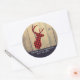 Hirschkopf mit Antlern auf Imitaten Wood Birthday Runder Aufkleber