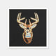 Ein Hirschkopf Energy Spirit Design auf schwarzem Hintergrund. Ein weißer Schwanz, der sich gegen eine Pocktrophie-Grafik wendet, die sicher auf oder von den Trails einen Eindruck hinterlässt.