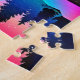 Eine Darstellung des Hirsches in einem Bergwald in den Farben des Polarborealis unter den Sternen des Abends.