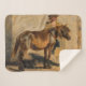 Dieses Design zeigt ein Gemälde des österreichischen Künstlers August von Pettenkofen (1822-1889). Es zeigt einen traditionellen Hirten, der neben einem kleinen braunen Pferd stehend ist. Das Pferd ist ruhig und entspannt neben dem Menschen. Die Vintage Szene ist ein schönes Beispiel für Tierkunst.