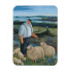 Hirte mit Schafen in der Flusslandschaft Magnet
