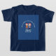"A Christmas design themed 'His & Hers Christmas Cheer' featuring an illustration of a pair of children in Santa outfits holding gifts and the greeting 'Merry Christmas' on a blue background."