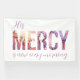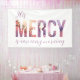 A radiant blend of pink, orange, and purple hues fills the word MERCY, echoing the warmth of morning light. The phrase His mercy is new every morning offers a daily reminder of divine renewal and unwavering grace.