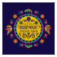 Hispanic Heritage Month Design mit einem Papierzentrum und bunten, Folk Art Blume, Toucans, Pinatas, Chameleon Eidechsen.