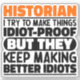 Die lustigen historischen Redewendungen "Historiker Ich versuche, Dinge zu machen idiot, aber sie Behielt, besser Idioten zu machen". Nimm dieses lustige historische Design als lustige Geschenke für eine phantastische Mutter, einen Vater oder einen Freund.