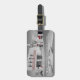 Dieses Gepäckschild zeigt ein Foto mit einem roten Farbspritzer auf schwarz-weiß des beliebten Zielortes entlang der historischen Route 66 von Arizona in Winslow, Arizona. Foto ©Patricia AZ Phillips