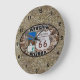 Legen Sie ein Konversationsstück auf Ihre männliche Höhle, Werkstatt oder Garage Wand mit dieser maßgeschneiderten 10,75 cm Durchmesser Acrylwand, die ein nostalgisches Winslow Arizona Route 66 ovales Aufkleber-Design auf einem sandgetexturierten Hintergrund zeigt. Die ovale Gestaltungscollage besteht aus einem Foto einer Brunnenmauer entlang eines begehbaren Segments der Route 66 in Parks, AZ als Hintergrund und die beiden Embleme stammen aus einem Foto des Hinweises Arizona Historic US Route 66. Der sandige Hintergrund und die Zahlen sind Vorlagenelemente, die Sie löschen können, wenn Sie diese Uhr ohne Zahlen und eine solide Hintergrundfarbe wünschen. Klicken Sie auf die Schaltfläche Anpassen!, um Text wie einen Namen, einen Namen, einen Firmennamen oder ein Zitat hinzuzufügen. Stellen Sie sicher, dass Sie die kleineren 8 Zoll Durchmesser und 10,75 Zoll Quadrat Optionen für das Design Karo.