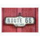 Gerahmtes Zeichen für die historische US-Route 66 auf einem roten Gebäude