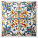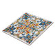 Diese faszinierende Kachel präsentiert ein aufwändiges Design mit blauen, orangefarbenen und gelben Blumen, die mit üppigem grünen Blattwerk verwoben sind.