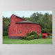 "Historic Red Round Barn, Halcottsville, New York" von Catherine Sherman. Der Kelly Round Barn und das Gelände sind jetzt die Website eines Bauern Markt. Die Scheune befindet sich in der Nähe von Halcottsville im Landkreis Delaware, New York. und wurde 1899 für die Kelly Brothers für eine einfachere Kuhpflege gebaut. Die Scheune ist eine zweistöckige Struktur mit einem niedrigen konischen Dach, ca. 30 m Durchmesser. Es verfügt über ein zentrales Silo. Die Familie Meade leitete den Milchbetrieb bis 1963. Die Scheune wurde 1988 rekonstruiert. Es wurde 1984 im National Register of Historic Places geführt. Seit 1991 versammelten sich Bauer und Handwerker von Mitte Mai bis Mitte Oktober auf dem Gelände des Round-Barn, um ihre Waren auf dem pakatakanischen Bauer-Markt zu teilen.