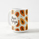 Ein Muster handgezückter tropischer Papayafrüchte in kräftigen, tiefen Orangen-Farben mit Samen. Die Papayas sind von Punkten umgeben und der lustige Gruß "hiya papaya" in handgeschriebenem Text für ein wenig Spaß. Meine Hiya Papaya Fruchtigkeit Muster ist eine freche Drehung auf die üblichen tropischen Fruchtdesigns! Passen Sie dieses Muster an, indem Sie eine beliebige Hintergrundfarbe auswählen. Fügen Sie einen Namen in den Schriftart, um diese Tasse zu einem einzigartigen Geschenk für jemanden oder für sich zu machen.