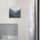Souvenir Foto Magnet einer Landschaft mit einer kurvigen Straße in grünes Hjelle Tal umgeben von hohen Bergen in Norwegen.