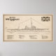 HMS Dreadnought ship plans. Ikonischer Erster Weltkrieg Schlachtschiff der Briten. Entwurf im Entwurf, Plan oder Plan, Diagramm Stil mit Angaben zu den Schiffsdaten oder Spezifikationen.