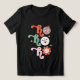 Ho Ho Groovy Disco Retro Weihnachtsfrauen T - Shirt zeigt den farbenfrohen festlichen Text "Ho Ho Ho Ho" in der modernen Scipt Typografie mit akustischer Diskothek, Schneemann und zarte Blume. Ideal für Weihnachten und Feiertage. Erstellt von Evco Holidays www.zazzle.com/store/evcoholidays
