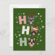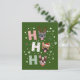 Niedliche Abbildung der französischen Bulldoggesichte in dem Wort "Ho Ho Ho", das in Urlaubskleider verziert ist. Ideal für Liebhaber von Haustieren während der Ferienzeit.