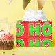 Farbiges Weihnachtsdesign mit dem Text Ho, ho, ho" in rot und grün.