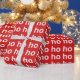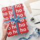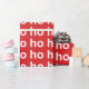 Dieses Packpapier macht Ihren Urlaub fröhlich! Die Worte "ho ho ho ho" erscheinen immer wieder in Weiß auf einem Weihnachtsrot Hintergrund.