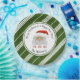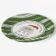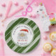 Verbringen Sie die Weihnachtsfreude mit diesen maßgeschneiderten und personalisierten Weihnachtszeitschriften-Tellern mit einem festlichen und heilenden Weihnachtsmann, der HO HO HO HO singt. Dekoriert mit einem Urlaubssklassiker aus grünen und weißen Diagonallinien, der Pfefferminzkerzenstreifen simuliert. Original Illustration von Suki's, alle Rechte vorbehalten.