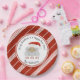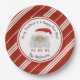 Verbringen Sie die Weihnachtsfreude mit diesen maßgeschneiderten und personalisierten Weihnachtszeitschriften-Tellern mit einem festlichen und heilenden Weihnachtsmann, der HO HO HO HO singt. Dekoriert mit einem Urlaubssklassiker mit roten und weißen diagonalen Linien, die Pfefferminzbonbons simulieren. Original Illustration von Suki's, alle Rechte vorbehalten.