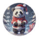 Glückliche Urlaubswünsche! Glückliche Urlaubswünsche! Niedlicher Santa Panda mit schneebedecktem Boden.
