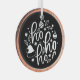Machen Sie eine kühne Aussage über Ihren Weihnachtsbaum mit diesem stilvollen Weihnachtsschmuck mit weißem Ho Ho Ho-Drehbuch, umgeben von spielerischen Illustrationen - Heilig, eine Weihnachtsmannmütze, Zuckerrohr und Ornamente - auf klassisch schwarzem Hintergrund. Mit einem rustikalen Imitat mit holzgeschliffener Kante bringt dieses Ornament einen festlichen Pop in das moderne oder Bauernhausstil.