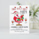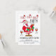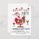 Dieser fröhliche Weihnachtsmann lädt Ihre Gäste zu Ihrer Weihnachtsfeier ein, Weingläser in der Hand, er ist bereit zum Party. Niedlicher Satz sagt: "Ich träume von einem Weißen Weihnachten, aber wenn das Weiße ausgeht, trinke ich das Rote"