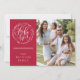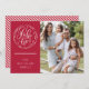 Für Freunde, Familie und Nachbarn senden wir Ihnen unsere flache Urlaubsfotokarte mit einer einzigartigen handgeschriebenen Ho Ho Ho Ho! in einem botanischen Kranz-Design auf einem soliden, weihnachtroten Hintergrund mit einer festlichen Bonbons-Streifen-Karte.