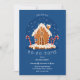 Mit unserer festlichen und leckeren Feierlichkeit laden wir Sie zu Ihrem fröhlichen Ho-Ho-Zuhause ein. Design zeigt eine flache Design-Cartoon-Illustration eines Lebkuchenhauses mit Bonbons, bunten Sprinklen, weißem Zuckerguss und "schließen Sie sich uns an unserer HO-HO-ZUHAUSE" in einer weichen, informellen Schrift auf einem mittelblauen Hintergrund. Fügen Sie Ihre Party-Details in passender Weißschrift hinzu. Die Karten kehren zu einem mittelblauen Hintergrund mit weißen Schneeflocken zurück.