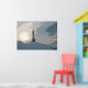 Dieses Plakat ist das Hoad Monument, besser bekannt als das Sir John Barrow Monument, das sich oben auf dem Hoad Hill oberhalb von Ulverston, South Lakeland, Cumbria, Großbritannien befindet. Es handelt sich um einen Leuchtturm, der aber nie als ein Leuchtturm benutzt wurde. Dies ist eine digital verbesserte Manipulation des Fotos im Schnee, mit dem Sonnenlicht im Himmel hinter dem Denkmal. Die Stimmung ist sanft und kontemplativ, die Farbpalette ist grau und weiß.