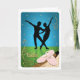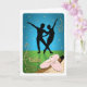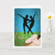 Feiern Sie die Freude am Balletttanzen mit dieser beliebten Grußkarte. In der Silhouette ist ein pas de deux hinterbeleuchtet mit blauen Lichtern, Sternen und Glitzern. Der Boden der Bühne ist grün mit Sternen und Glitzern. Der Kern der Ballettübungen wird an der Barre durchgeführt. Mit rosa Ballettschuhen sind Sie für den Unterricht bereit. Gold-Ornamente schmücken die Ecken der Karte mit dem Wort Ballett in Schriftzypografie. Innen: Leere für jeden Anlass.