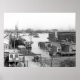 Kein New Jersey Zuhause oder Business sollte ohne eines dieser Feinartikel sein. Hier sind die Docks der Holland America Line in Hoboken. Rechts von diesen Docks befinden sich die Docks von Nord Deutches Lloyd. Schauen Sie über den Fluss und Sie werden die Liegeplätze für die Schiffe der großen Seenahnen sehen: White Star, Cunard, Wilson und Leyland. Man bekommt auch Schlepper und Eisenbahnfähren. Übrigens ist das HAL-Schiff SS Potsdam. Holen Sie sich das größtmögliche Poster und dann starten Sie von der Arbeit, um es mit einer Lupe genau zu studieren. Sie werden nicht enttäuscht sein.