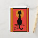 So cool, so raffiniert! Eine lange magere schwarze Katze sitzt vor einer orangefarbenen Kulisse. Vintage-Bild. Coole Halloween-Karten sind vollständig anpassbar. Sie können Ihren eigenen Text vorn oder innen (oder auf Postkarten auf der Rückseite) hinzufügen. Kaufen Sie ein oder ein Dutzend und vergessen Sie nicht das passende Porto!