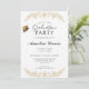 Das ist eine elegante Graduiertenparty mit einem goldenen Blumendesign mit feinen Akzenten und einem ausgeklügelten Script-Schriftart. Das Layout beinhaltet den für den Absolvent individuell anpassbaren Text für den Namen, die Schule, das Datum, die Uhrzeit, den Veranstaltungsort und die UAWG. Eine kleine Graduationsmütze-Illustration fügt eine feierliche Touch hinzu. Ideal für feierliche und stilvolle Abschluss-Feste.