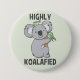 Hoch koalafied - hoch qualifiziert. Eine niedliche graue Koala-Cartoon-Grafik zeichnend mit einem Koala-Bärenpun. Das wilde Tierdesign ist lustig und lieblich. Australisches Wildbaby-Tier auf einem Eukalyptusbaum mit Kaugummi-Blätter
