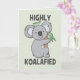 Hoch koalafied - hoch qualifiziert. Eine niedliche graue Koala-Cartoon-Grafik zeichnend mit einem Koala-Bärenpun. Das wilde Tierdesign ist lustig und lieblich. Australisches Wildbaby-Tier auf einem Eukalyptusbaum mit Kaugummi-Blätter