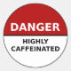 Gefahr - Hoch koffeiniert - Warnhinweis in rot, weiß und schwarz.