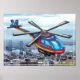 Hochfliegender Hubschrauber über Autobahnen Poster