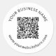 Hochgeladene QR-Codevorlage mit bearbeitbarem Text Runder Aufkleber