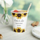 Hochzeitspapier-Cups in Gelb und Weiß mit Gelb Wasserfarbe Sonnenblumen und Wörter Cheers to Liebe, bearbeiten Sie Text mit dieser Option Vorlage personalisieren. Diese Papiertassen können für Hochzeiten auf dem Lande, Brautparty, Probe-Dinner, Bridal Brunch, Mittagessen und rustikale Verlobung oder Empfang verwendet werden.