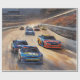 Eine lebendige und dynamische Darstellung eines Rennens in der Dämmerung, die die Geschwindigkeit und Energie der Autos einfängt, während sie die Strecke herabzoomen. Dieser Ausdruck ist ideal für Motorsport-Fans und Liebhaber von Adrenalinmomenten und eignet sich hervorragend, um jedem Raum Spannung und Action zu verleihen.