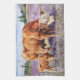 Hochland-Kuh und Kalb Lila Wildblumen Geschirrtuch