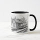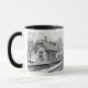 Wiedergabe der Hochland-Zug-Stationsgrafik durch Mary Palmer auf einer Kaffee-Tasse