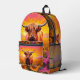 Hochlandkuh bei Sonnenblumen bei Sonnenaufgang Bedruckter Rucksack