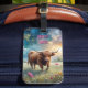 Hochlandkuh im Feld Blume Gepäckanhänger