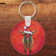 Hochlandkuh in Weihnachtsmannmütze auf Rot Schlüsselanhänger