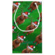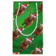 Hochlandkuh in Weihnachtsmannmütze-Muster auf Grün Kleine Geschenktüte