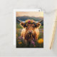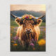 Hochlandkuh mit farbenfroher Blume Postkarte