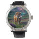 Uhr, Klassische Damenuhr mit schwarzen Lederarmband